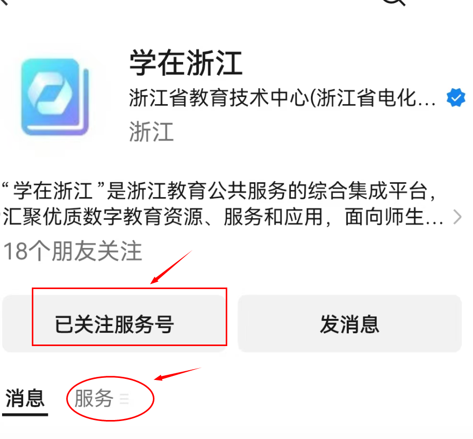 第一步:打开微信,关注微信公众号“学在浙江”→选择“服务”→点击“师训平台”→输入师训平台账号和密码,点击“登录”;
